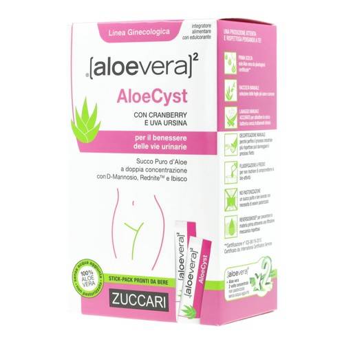 [aloevera]2 AloeCystDescrizione Integratore a base di succo puro di aloe a doppia concentrazione con cranberry (mirtillo rosso) e uva ursina per il benessere delle vie urinarie. L'equiseto e l'ibisco (karkadè) sono presenti nella formulazione per promuovere il drenaggio dei liquidi e sostenere la funzionalità delle vie urinarie. D-mannosio, tea tree e Rednite (succo di beta vulgaris dall'azione antiossidante) completano l'esclusivo mix. Ingredienti Aloe vera (syn Aloe barbadensis Mill.) succo del filetto della foglia puro al 100%*, ibisco ( Hibiscus sabdariffa L.) fiore estratto secco, equiseto ( Equisetum arvense L.) parti ...